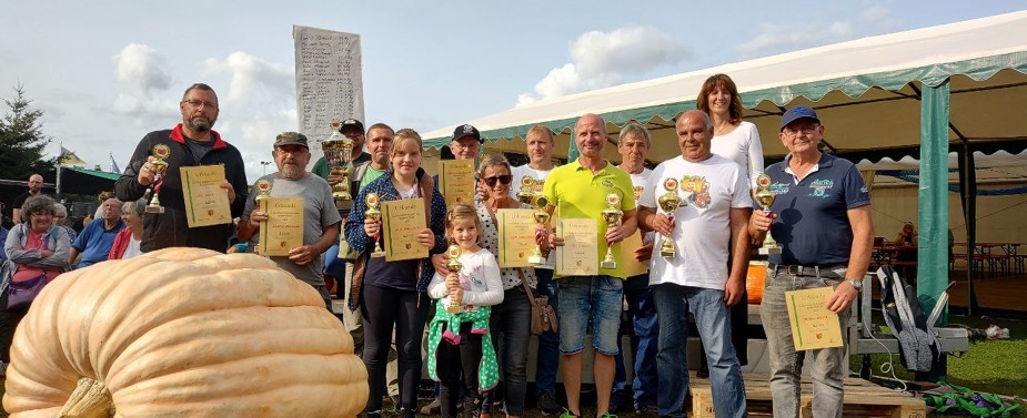 Die Sieger beider Kategorien wurden mit Pokalen und Urkunden geehrt. Die Teilnehmer mit den10 schwersten Kürbissen beider Kategorien bekamen die begehrten GPC Schleifen mit Plaketten.